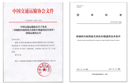 2022年11月16日,中國交通運輸協會新技術促進分會在長沙針對《城市軌道交通數據采集平臺技術規范》《單軸轉向架跨座式單軌車輛通用技術條件》《自動導向軌道交通車輛通用技術條件》三項團體標準舉行發布儀式。